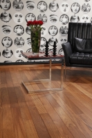 Ciekawym pomysłem na wykorzystanie egzotycznych gatunków drewna na podłogach jest połaczenie ich z klasycznymi, rodzimymi deskami podłogowymi. W ten sposób, kolorem drewna, możemy wydzielić z otwartej przestrzeni kuchnię czy przedpokój.
