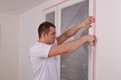 Przy użyciu taśmy i folii zabezpieczamy okna, grzejniki, podłogi, a oprawy gniazd elektrycznych i kontakty – demontujemy. Jeśli jest taka konieczność – luźno spójne fragmenty starej farby zeskrobujemy przy pomocy szpachelki. Następnie, gładzią gipsową szpachlujemy ubytki i nierówności. Miejsca gipsowane, po całkowitym wyschnięciu, szlifujemy papierem ściernym (w celu wyrównania i wygładzenia), a powierzchnie wcześniej malowane - dodatkowo matujemy drobnoziarnistym papierem ściernym. Po szlifowaniu ścianę dokładnie odpylamy szczotką oraz odtłuszczamy, używając do tego szmatki zwilżonej wodą z dodatkiem delikatnego detergentu.